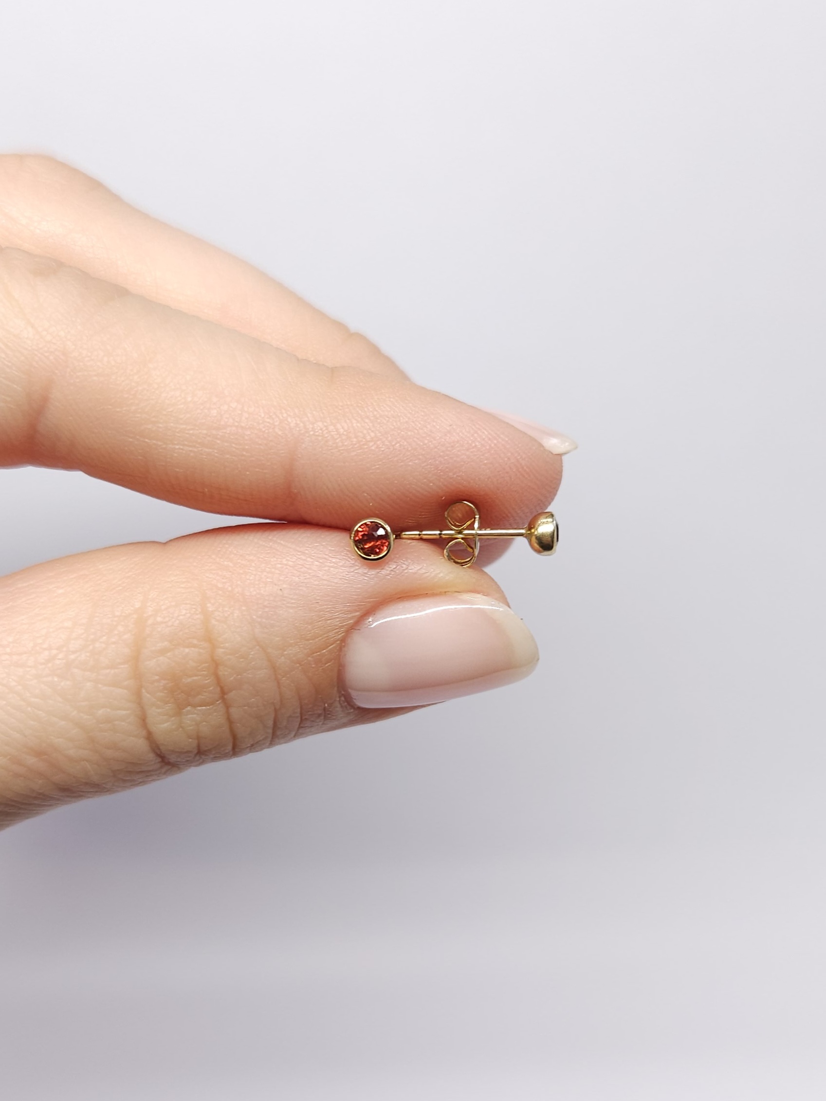 Золотые серьги с красными камнями, золото. 0,333 палки