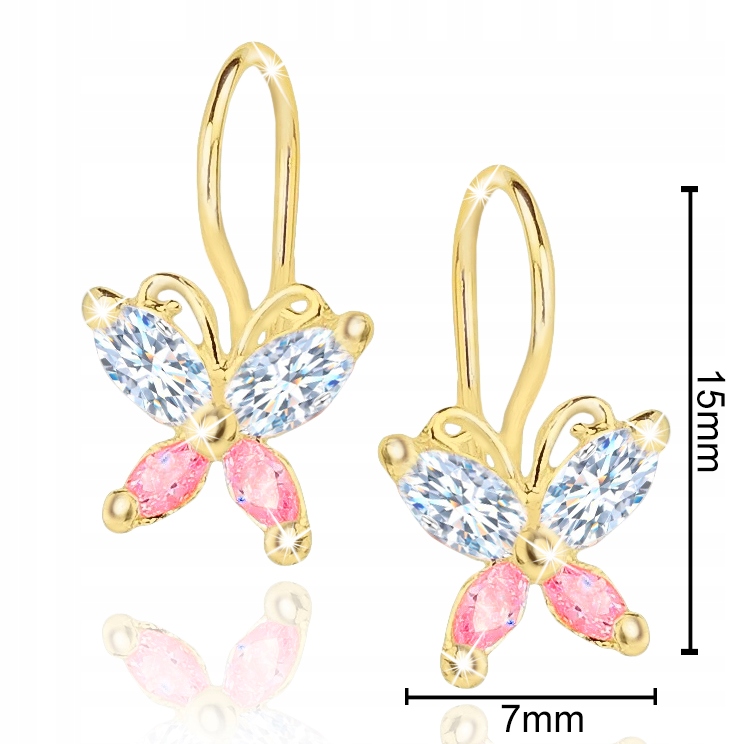 ЗОЛОТЫЕ СЕРЬГИ 925 БАБОЧКИ ДЛЯ ДЕВОЧКИ