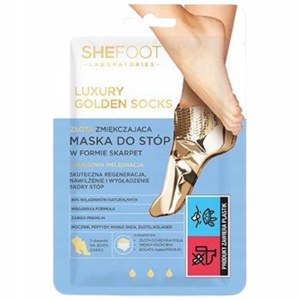 Золотая смягчающая маска ног в форме носков. Эффективно восстанавливает, увлажняет и сглаживает кожу ног