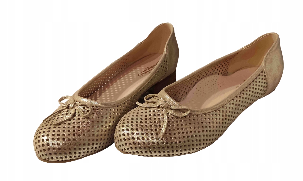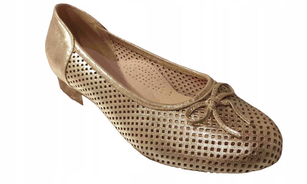У нас есть идеальная обувь для вас! Эти модные и удобные балетки изготовлены из 100% натуральной кожи красивого золотистого цвета. Плоский каблук шириной 2 см идеален для любого случая. Туфли очень широкие и имеют ширину H, что делает их идеальными для женщин с широкой стопой и большими пальцами рук.