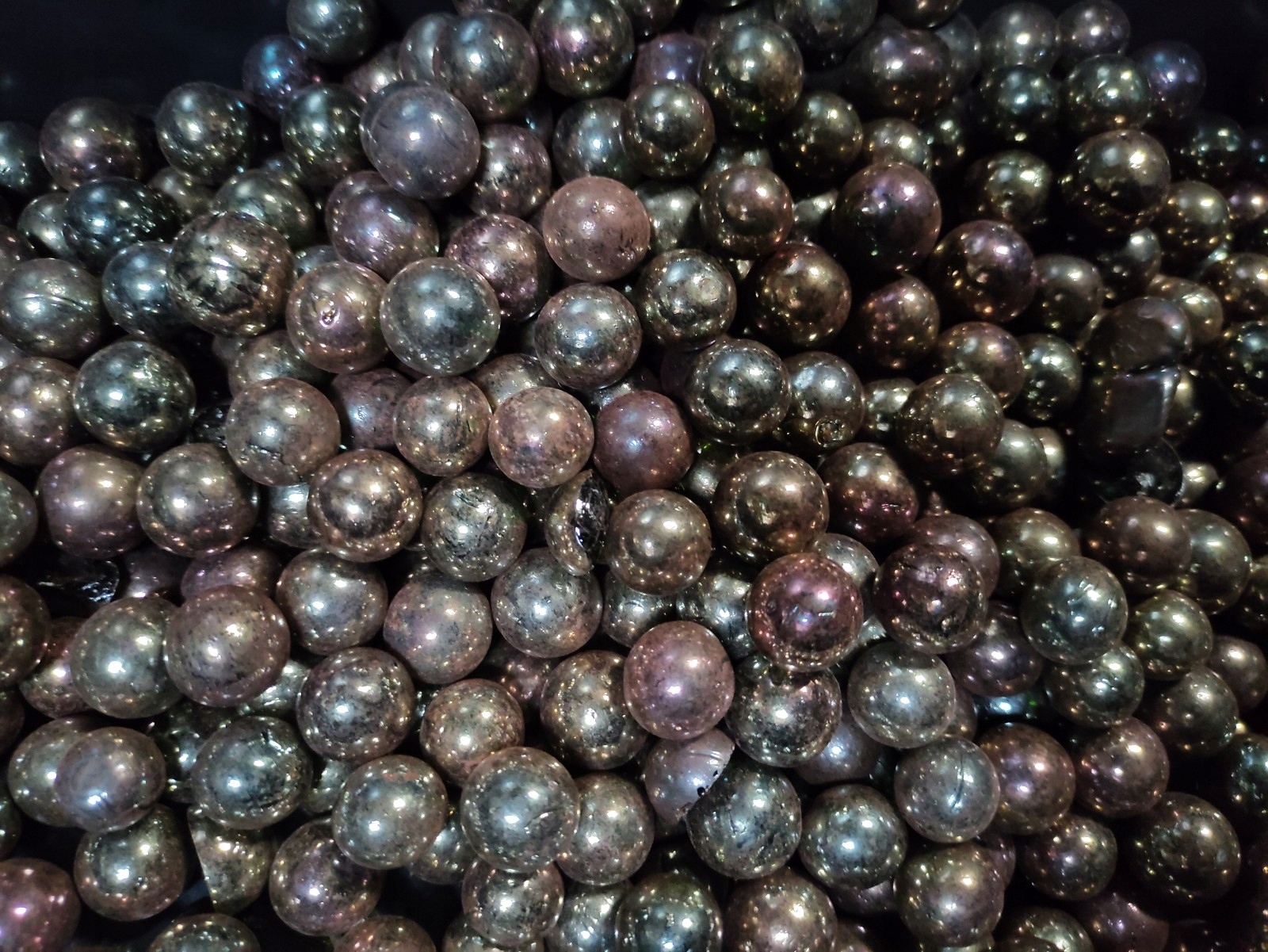 СТЕКЛЯННЫЕ ШАРЫ СЛЕГКО ЗЕЛЕНЫЕ ПОД СВЕТОМ И ЗЕРКАЛО НА ЗЕМЛЕ - ЗОЛОТО С ОТТЕНКОМ ИЗ МЕДИ.