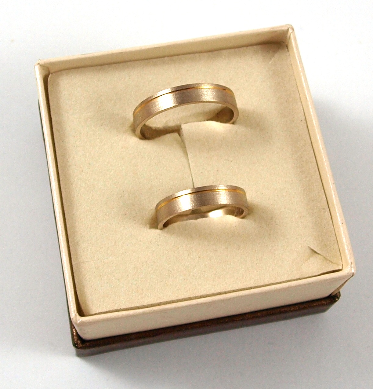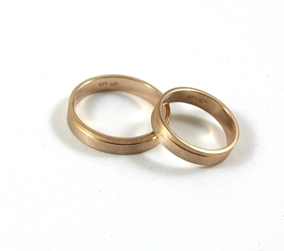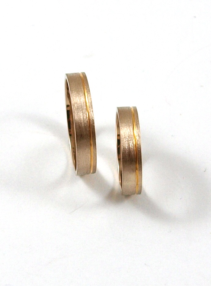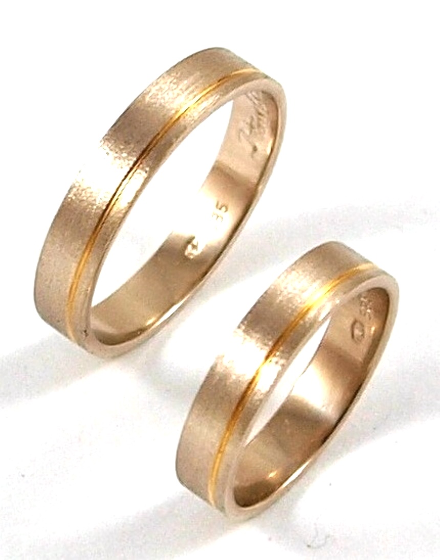 Вокруг обручальных колец тонкое углубление из желтого золота