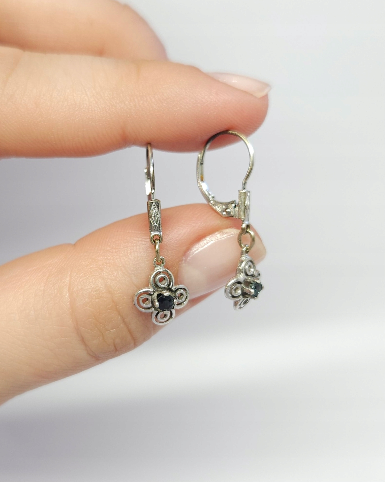 Золотые висящие серьги с хрисоберовыми, цветами - белое золото. 0,333
