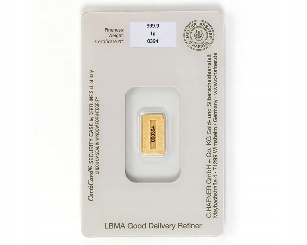 Having gold in the form of bars is an excellent investment in the будущее, потому что он всегда обладал высоким доверием как ценным и безопасным компонентом инвестиционного портфеля. Мы представляем вам золотые батончики весом 1 г , произведенные сертифицированным мятой C-Hafner.