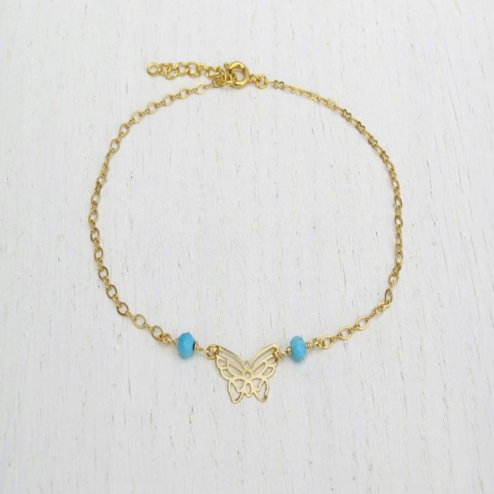 Золотий браслет щиколотки, кісточка, бірюза, метелик
