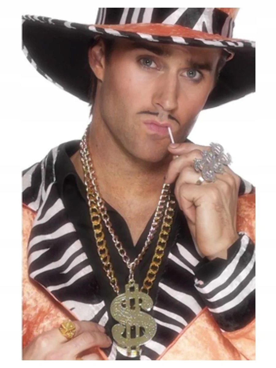 Элегантная золотая цепочка с подвеской в виде знака доллара выделит вас на костюмированной вечеринке. Блестящий способ дополнить образ сутенера, рэпера или гангстера. Блистайте на танцполе с нашим фирменным аксессуаром.