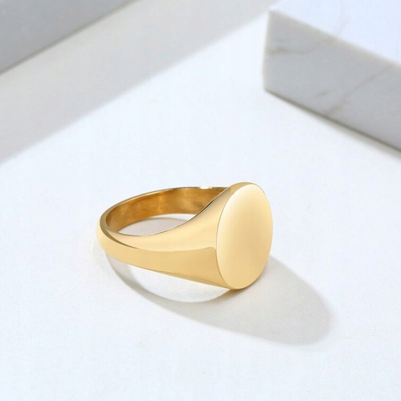 ЗОЛОТОЕ ЭЛЕГАНТНОЕ КРУГЛОЕ КОЛЬЦО-ПЕЧАТКА С НЕРЖАВЕЮЩЕЙ СТАЛИ