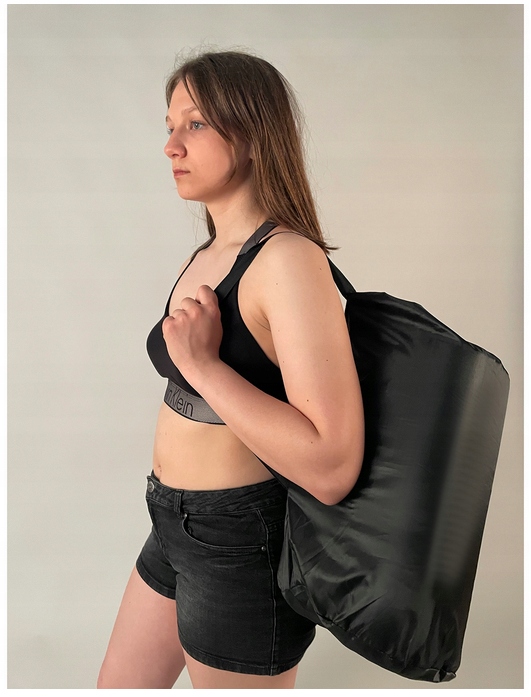 Набор можно свернуть и упаковать в сумку с удобной завязкой и прочным ремнем. Это решение позволяет брать его с собой куда угодно. Идеальное решение, например, для похода в спортзал.