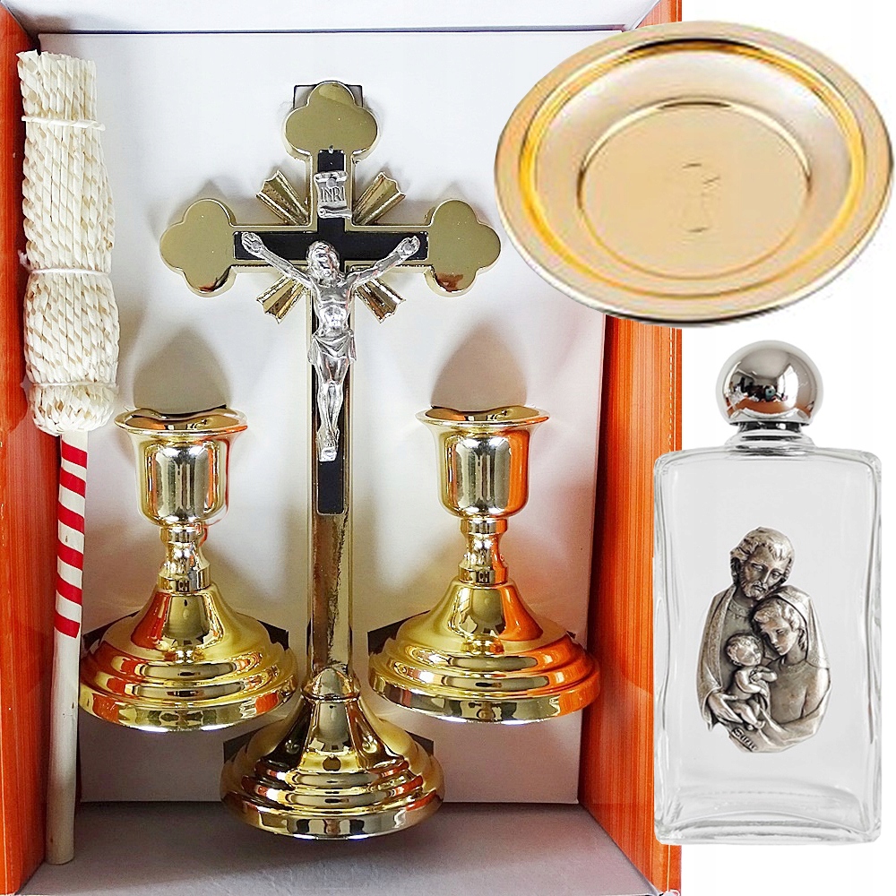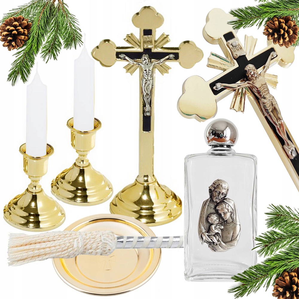 - КРЕСТ - ПОДСВЕЧИ - СВЕЧИ - РАСПЫЛИТЕЛИ - ТАРЕЛКА - БУТЫЛКА СВЯТОЙ ВОДЫ