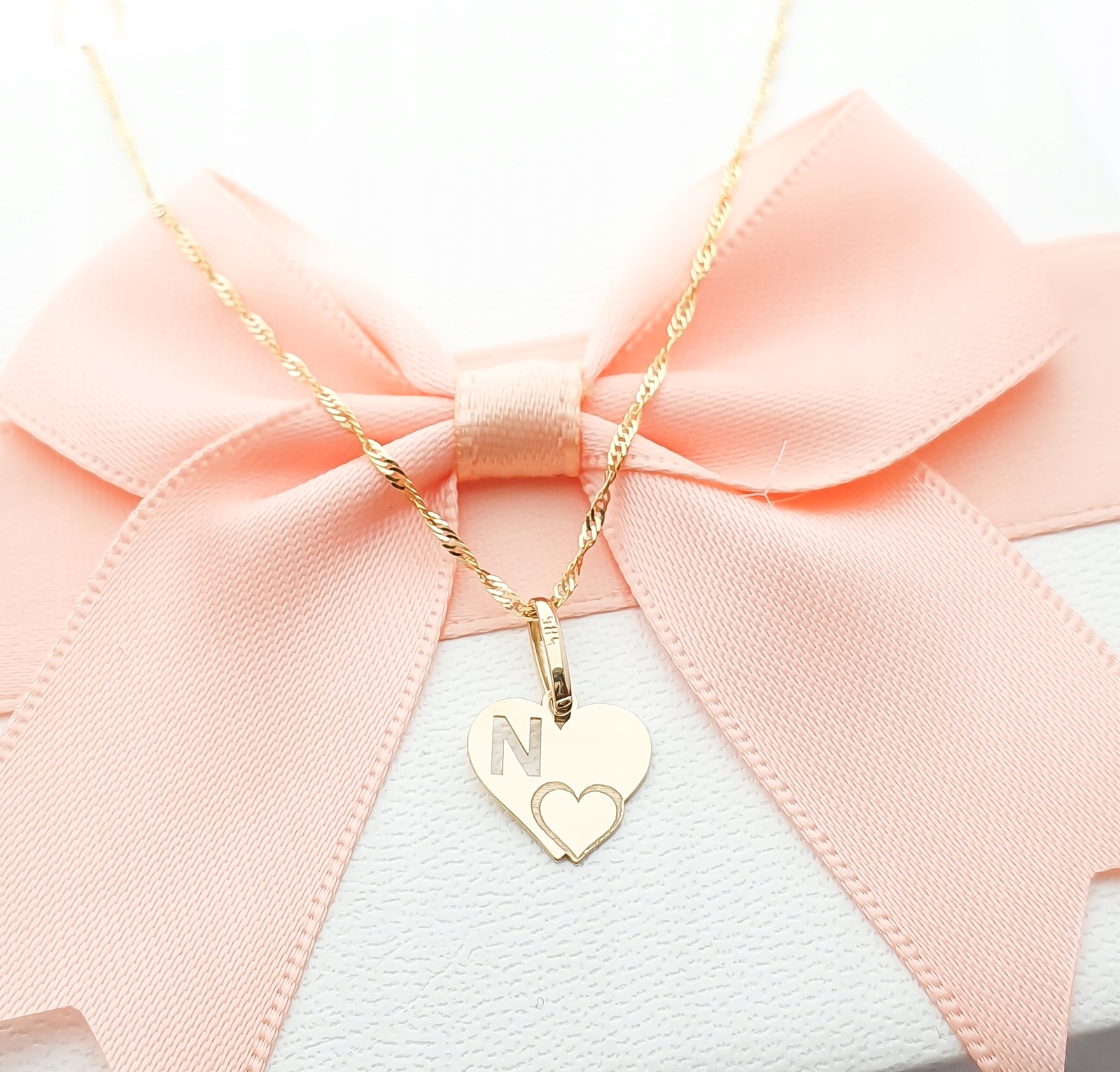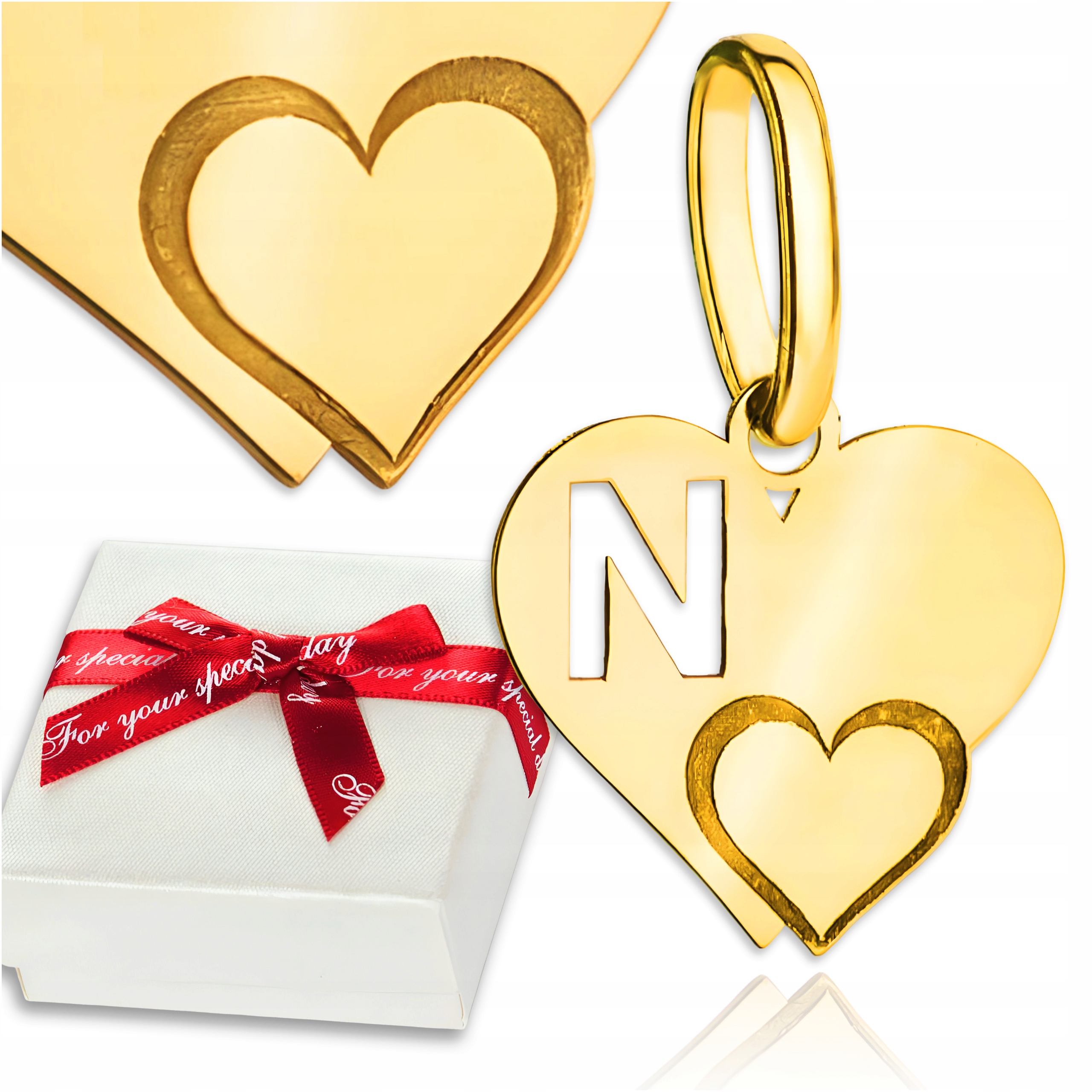 Золотой кулон 585 Letter Littera n в сердечном подарке на День святого Валентина