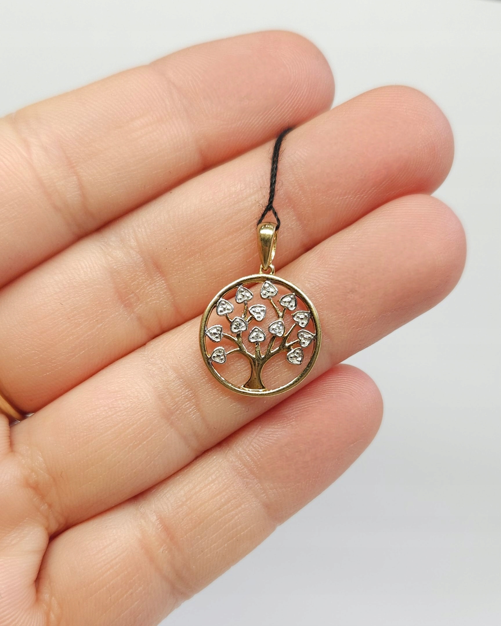 Золотой кулон «Древо жизни» с 3 бриллиантами, золото 0,375 пробы