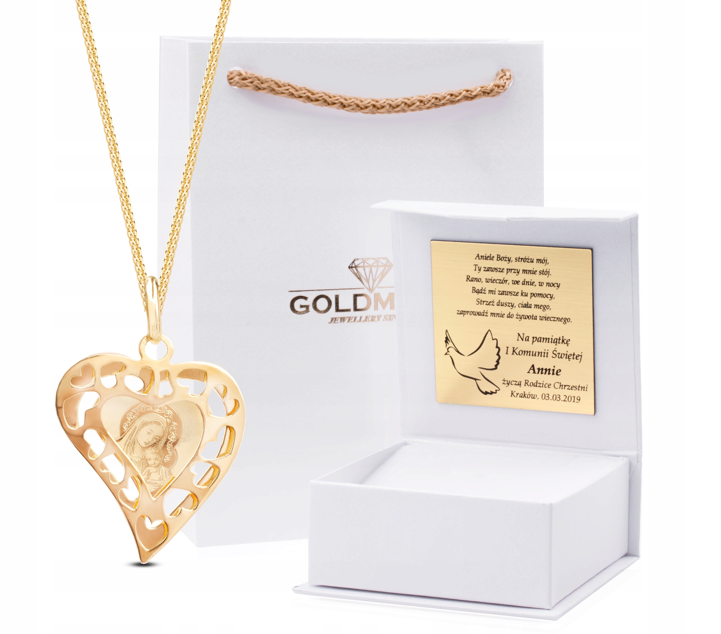 Просматривая «Золотой набор цепи с медалью для крещения, Святое Причастие 14KT 585», вы можете быть уверены, что данный товар из каталога «[rubrica_name]» будет доставлен из Польши и проверен на целостность. В цене товара, указанной на сайте, учтена доставка из Польши. Внимание!!! Товары для Евросоюза, согласно законодательству стран Евросоюза, могут отличаться упаковкой или наполнением.
