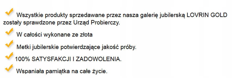 - Предлагаем изделия из драгоценного металла золота 333 пробы, проверенного Польской пробирной палатой.