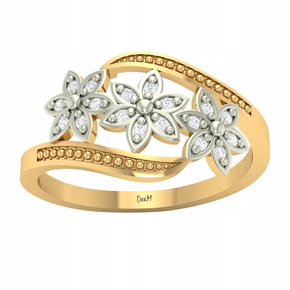 Очень женственное кольцо, украшенное тремя соединенными вместе цветами. Кольцо полностью изготовлено из желтого 14-каратного золота. Цветы были дополнительно покрыты белым родием, чтобы еще больше подчеркнуть очарование кольца. Такая высокая проба золота, как 585 проба, гарантирует, что кольцо не потемнеет и прослужит вам долгие годы.