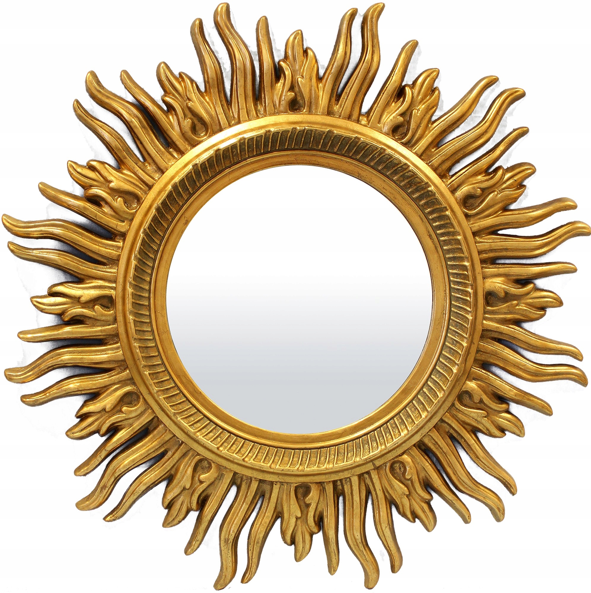 Золотое ретро -стилизованное зеркало, украшенное солнечным рамкой