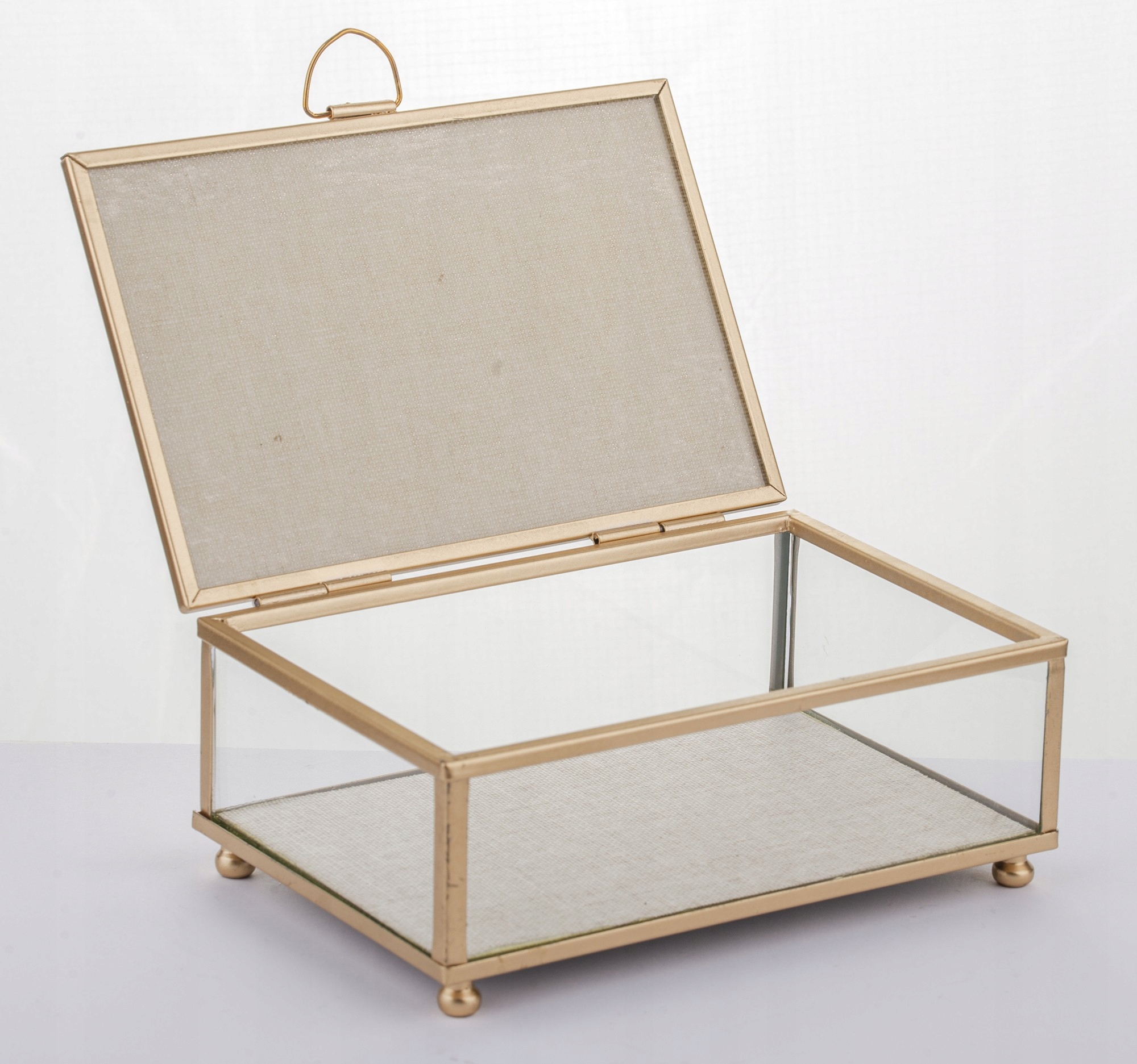 СТЕКЛЯННАЯ ШКАТУЛКА ДЛЯ ЮВЕЛИРНЫХ УКРАШЕНИЙ, ЗОЛОТОЙ ОРГАНАЙЗЕР