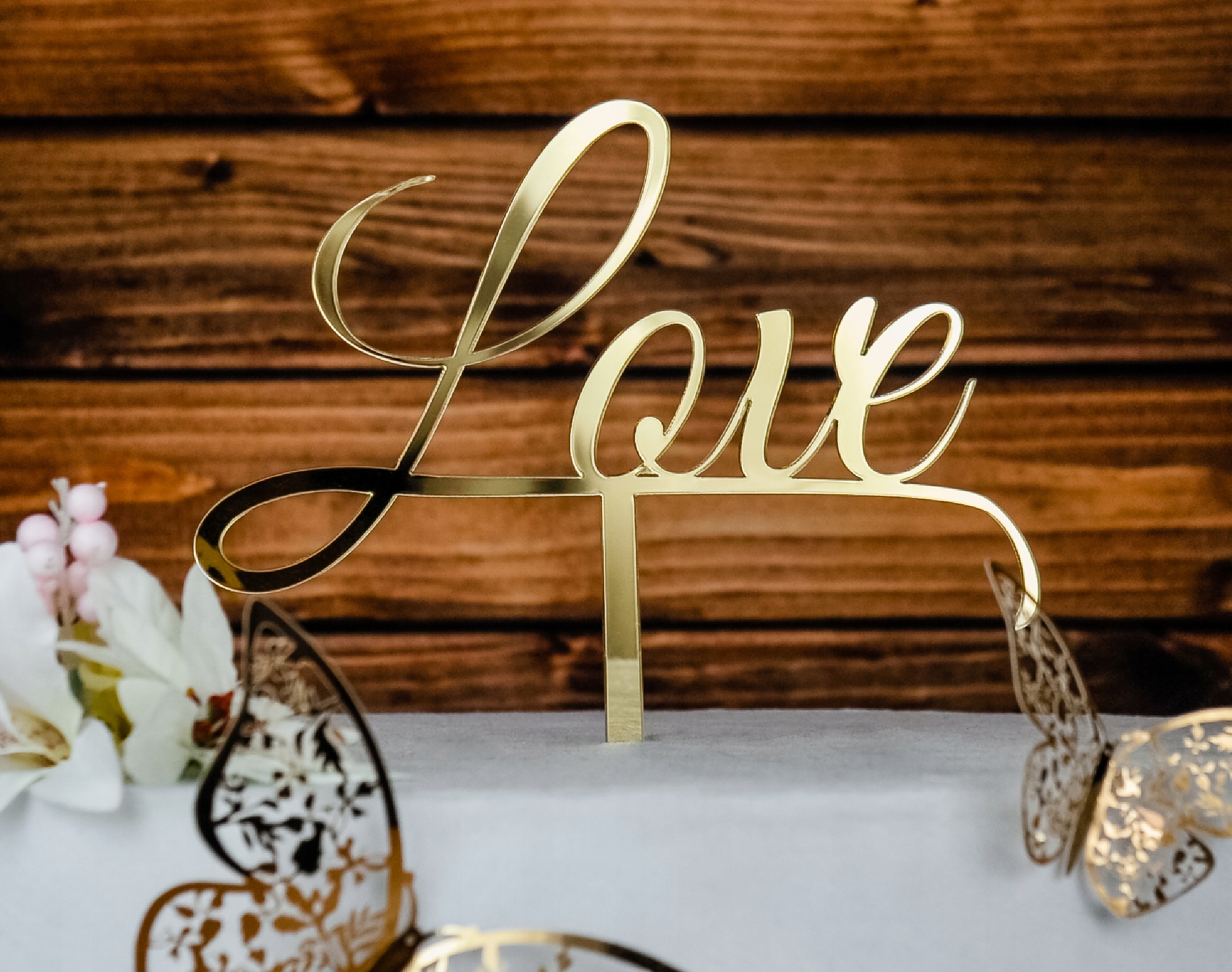 Изделие выполнено методом лазерной резки из золотого зеркала.