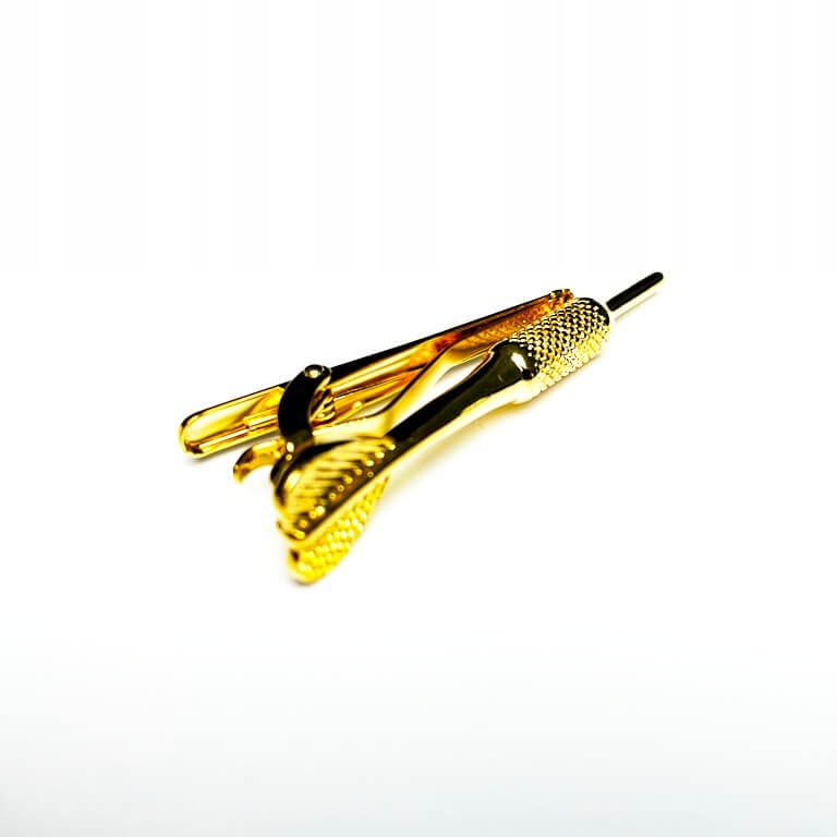 Улучшите свой уникальный образ с помощью нашего золотого зажима для галстука в форме дротика.