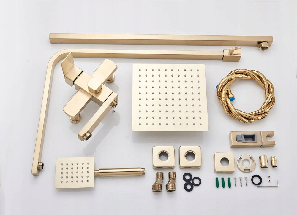 Золотой смеситель для душа оснащен тропическим душем, расположенным над головой пользователя. Вода, вытекающая из квадратного тропического душа, принимает форму дождя, приятно опрыскивая вашу голову и тело. Он создает впечатление массажа и позволяет испытать невероятные ощущения релаксации.