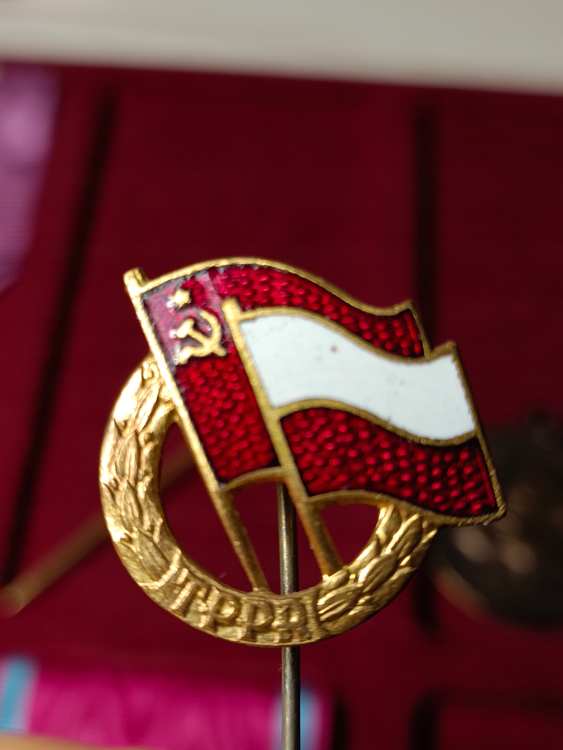 Золотой значок Общества польской дружбы с удостоверением личности с удостоверением личности