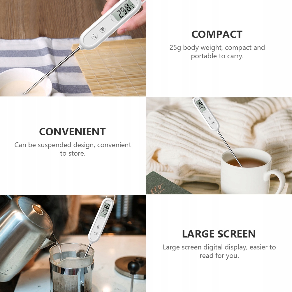 ✅Сверхбыстро и очень точно, готовьте идеальные блюда. Кухонный термометр оснащен большим светодиодным дисплеем с крупными цифрами, который позволяет четко видеть во время приготовления пищи как в помещении, так и на открытом воздухе; Игла термометра изготовлена из нержавеющей стали, безопасна для приготовления пищи.