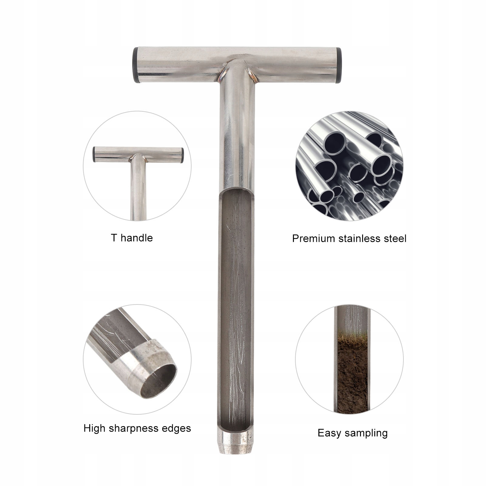 3. Удобная Т-образная ручка: Удобная Т-образная ручка для удобного захвата, этот зонд для отбора проб почвы из нержавеющей стали обеспечивает эффективный отбор проб и удобен в переноске.
