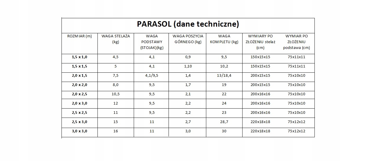 МЫ ПРОИЗВОДИМ ЗОНТЫ С ДРУГИМИ РАЗМЕРАМИ, ПРИВЕДЕННЫМИ В ТАБЛИЦЕ НИЖЕ, ИХ МОЖНО ПРИОБРЕСТИ НА ДРУГИХ АУКЦИОНАХ, ТАКЖЕ ПРОИЗВОДИМ: