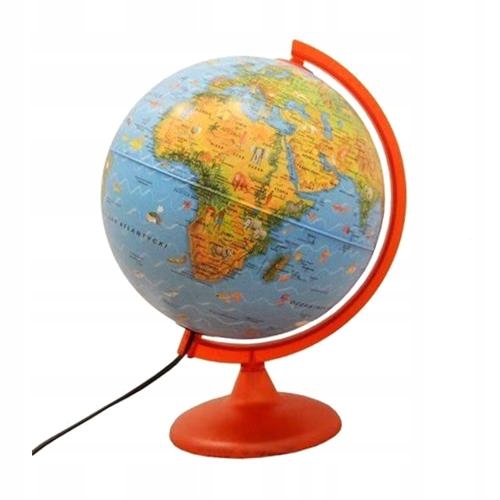 Установлен на пластиковой основе и закреплен на пластиковом меридиане. Карта на польском языке. Размер мяча 26 см, высота 33 см. Простая замена лампочки
