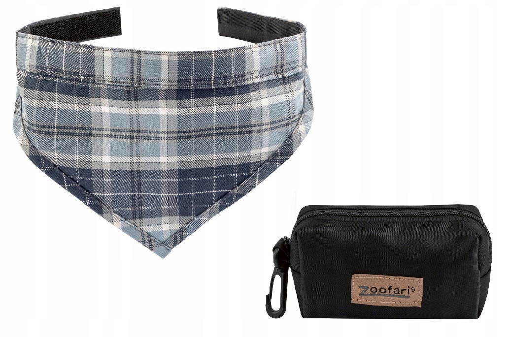 Зофари - Бандана для липучки собаки + сумка - серая решетка