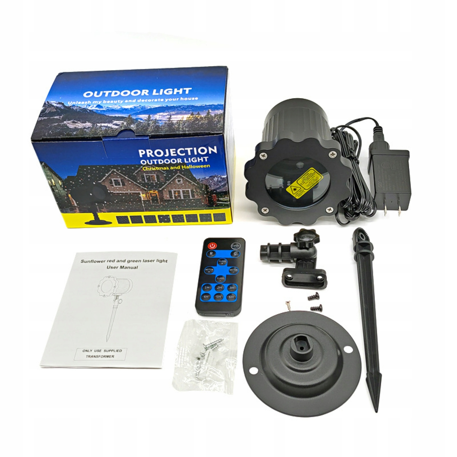 Мы предоставляем круглое основание, набор винтов и колышки для заземления, что позволяет легко установить наш лазерный проектор на земле или на стене. Регулируемый угол поворота на 180 градусов обеспечит наилучший эффект проецирования. Его можно использовать в гостиной, на стене или в саду.