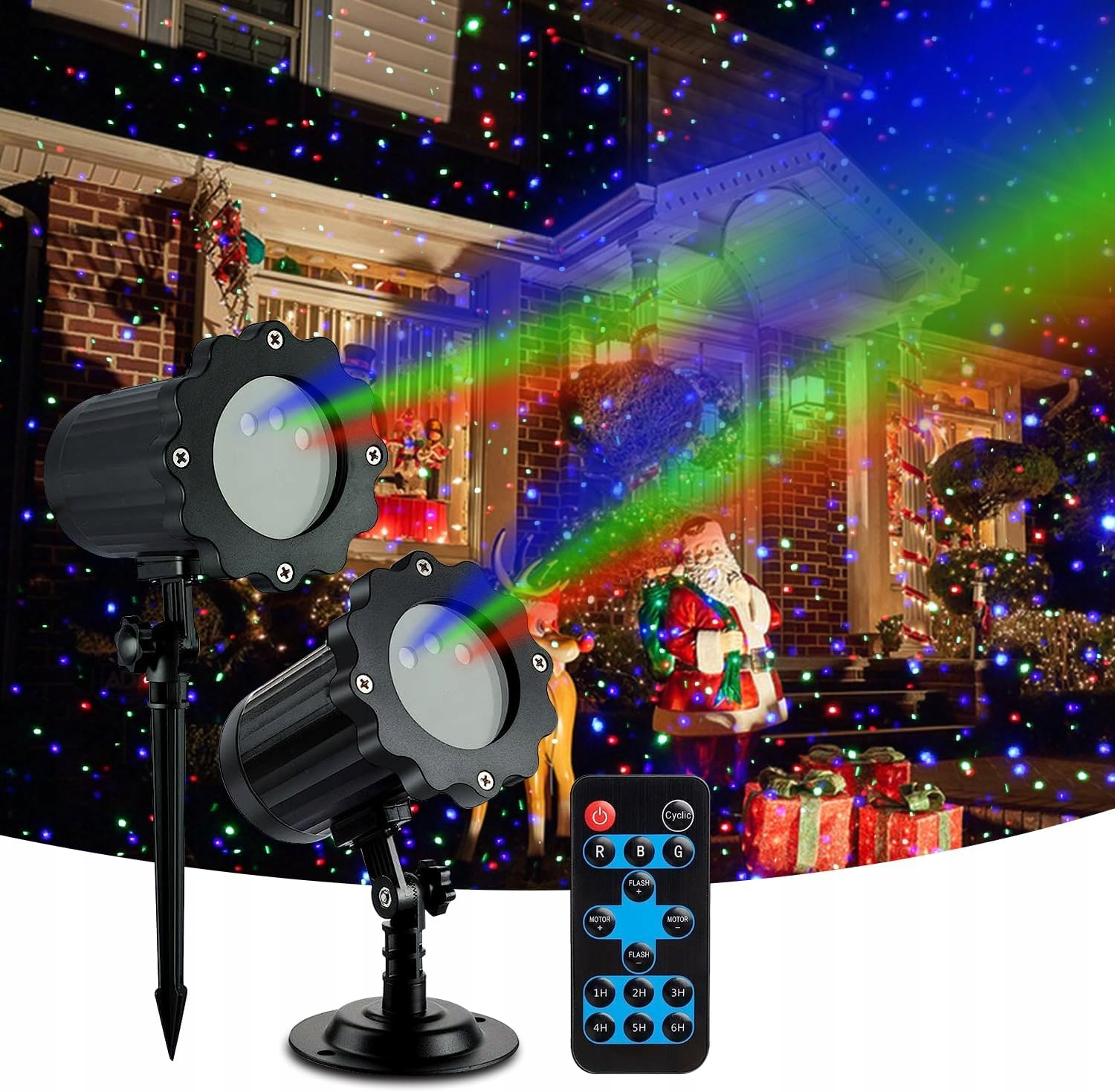 С помощью пульта дистанционного управления вы можете легко регулировать скорость вращения, скорость вспышки, частоту вспышки, 6 настроек таймера (1H, 2H, 3H, 4H, 5H, 6H) и выбирать цвет лазера на большом расстоянии.
