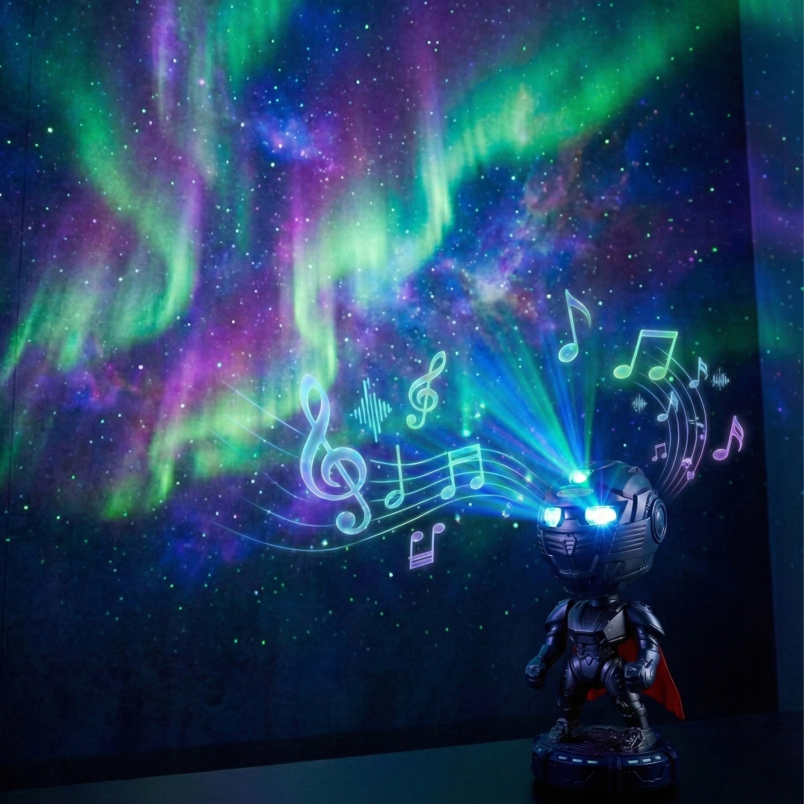 Откройте для себя необыкновенный Проектор Звездного Воина, который сочетает в себе целых четыре функции: звездный проектор, ночник, динамик Bluetooth и расслабляющий проигрыватель звуков природы! Это не только современный гаджет, но и уникальное украшение, которое привнесет космическую атмосферу в ваш интерьер.