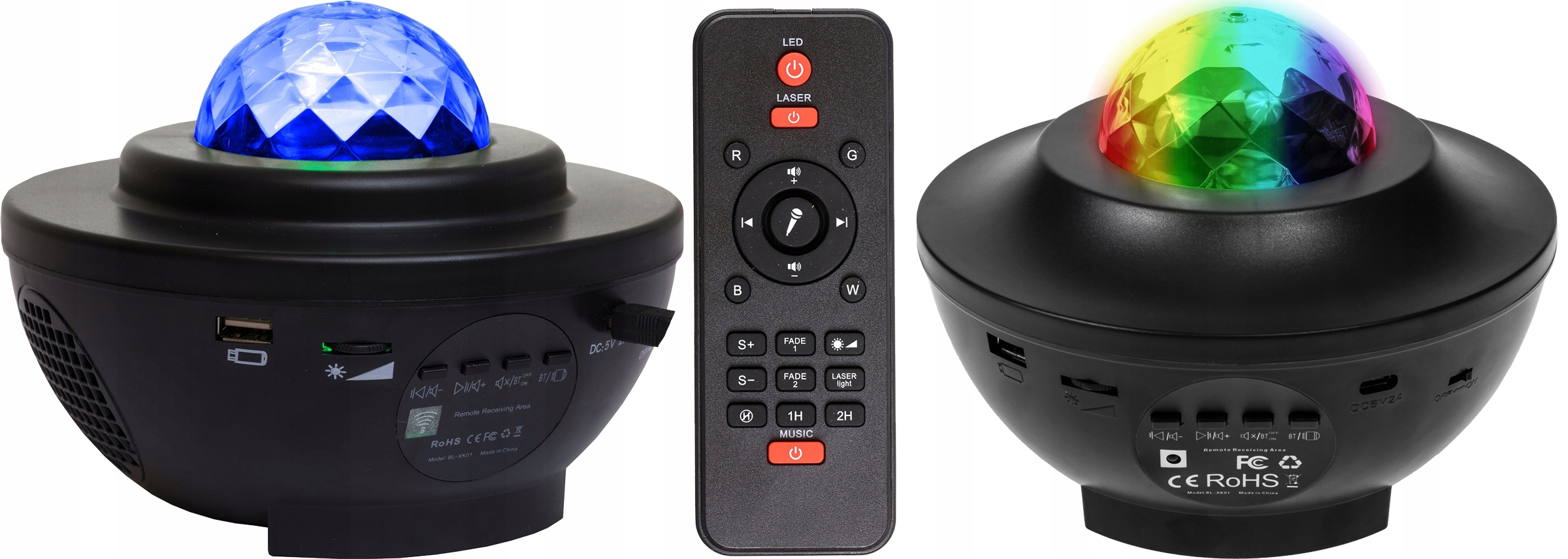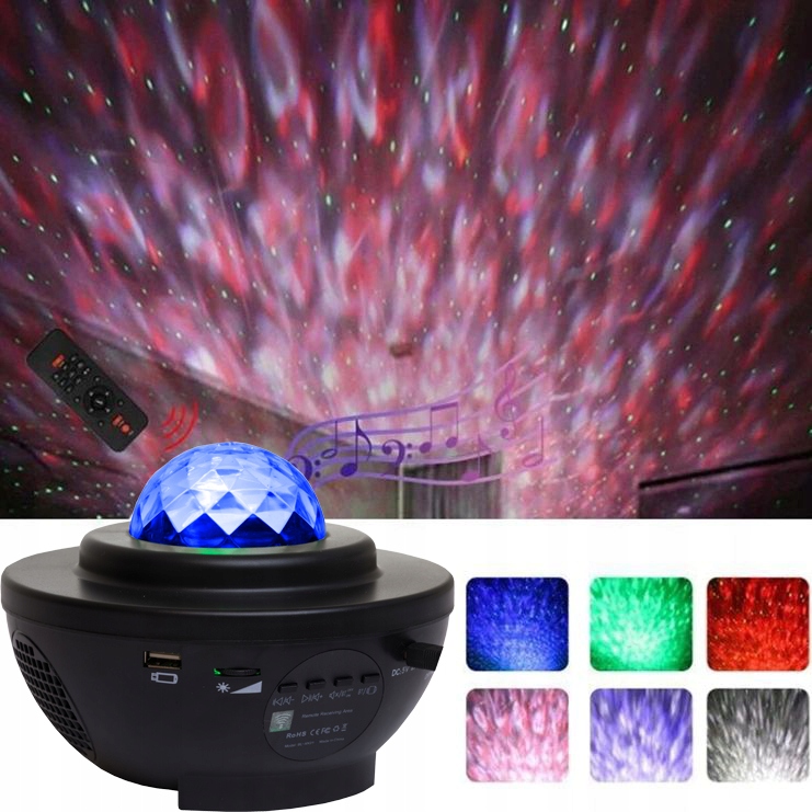 - Функции: светодиодный проектор, музыкальный динамик, Bluetooth, USB-вход, пульт дистанционного управления.
