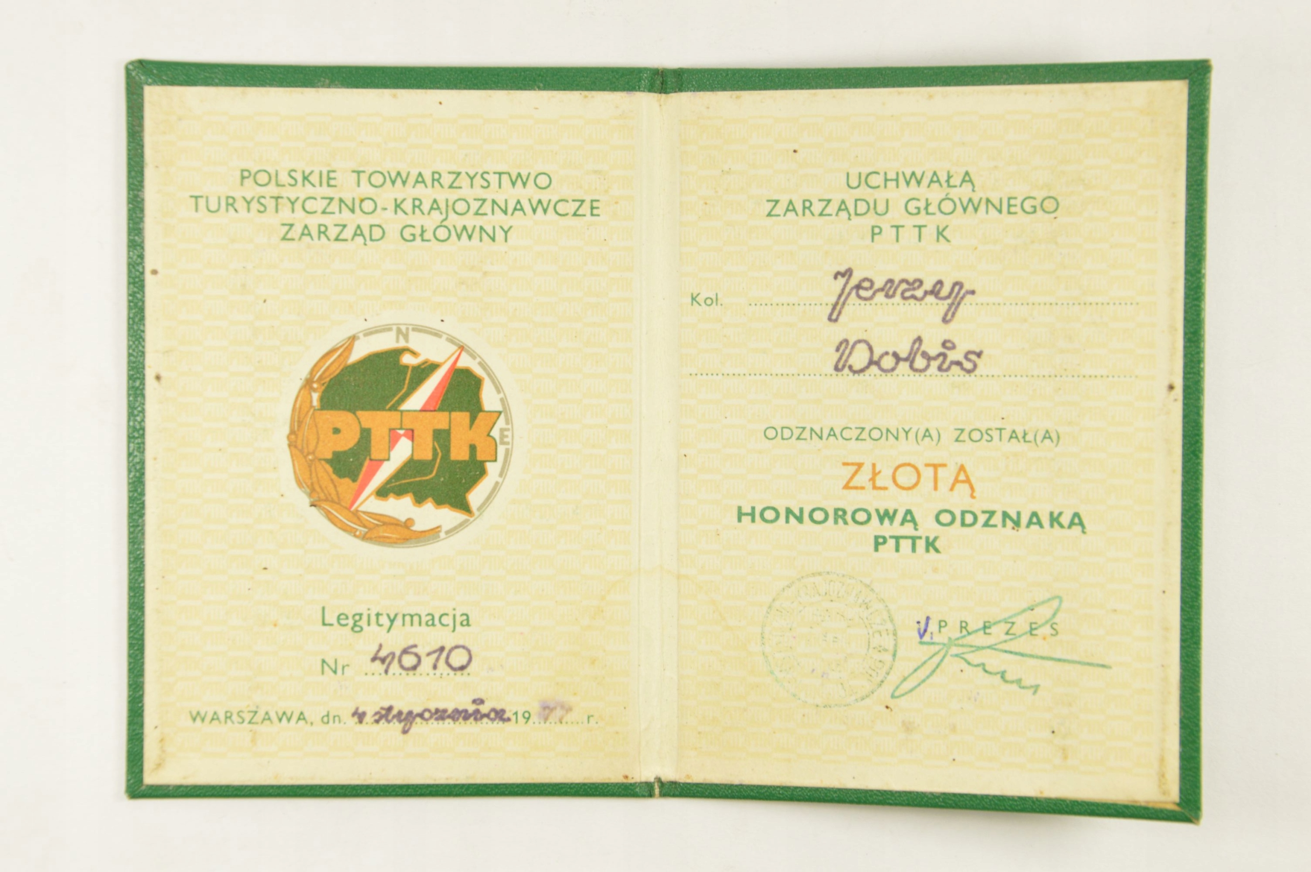 ZŁOTA HONOROWA ODZNAKA PTTK 1977 r. LEGITYMACJA KOMPLET ZOBACZ!