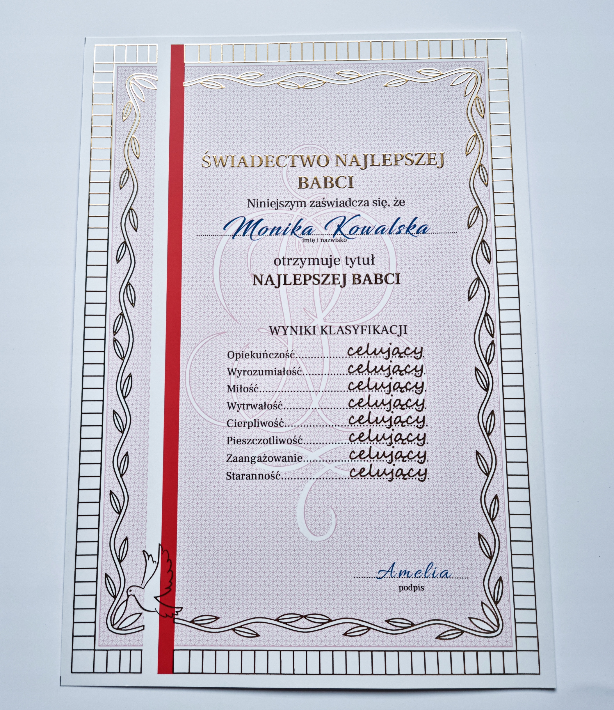 Złote Świadectwo dla babci - Dzień Babci - Admdecor