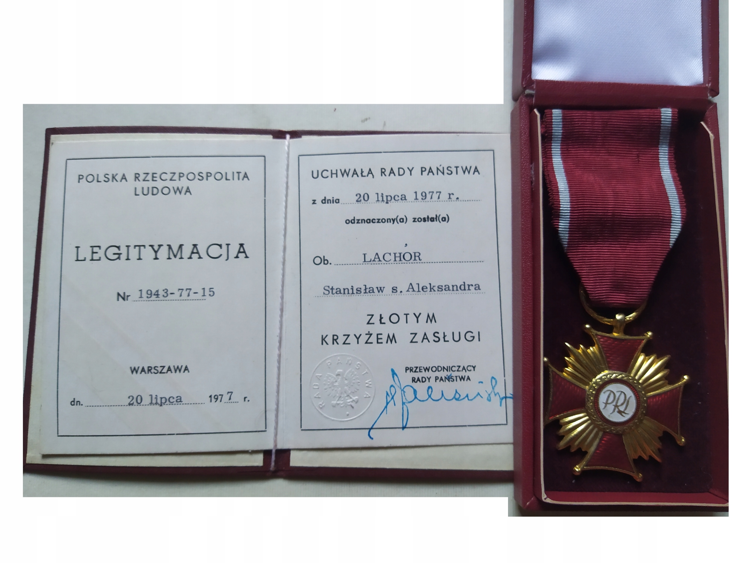 ZŁOTY KRZYŻ ZASŁUGI Z LEGITYMACJĄ