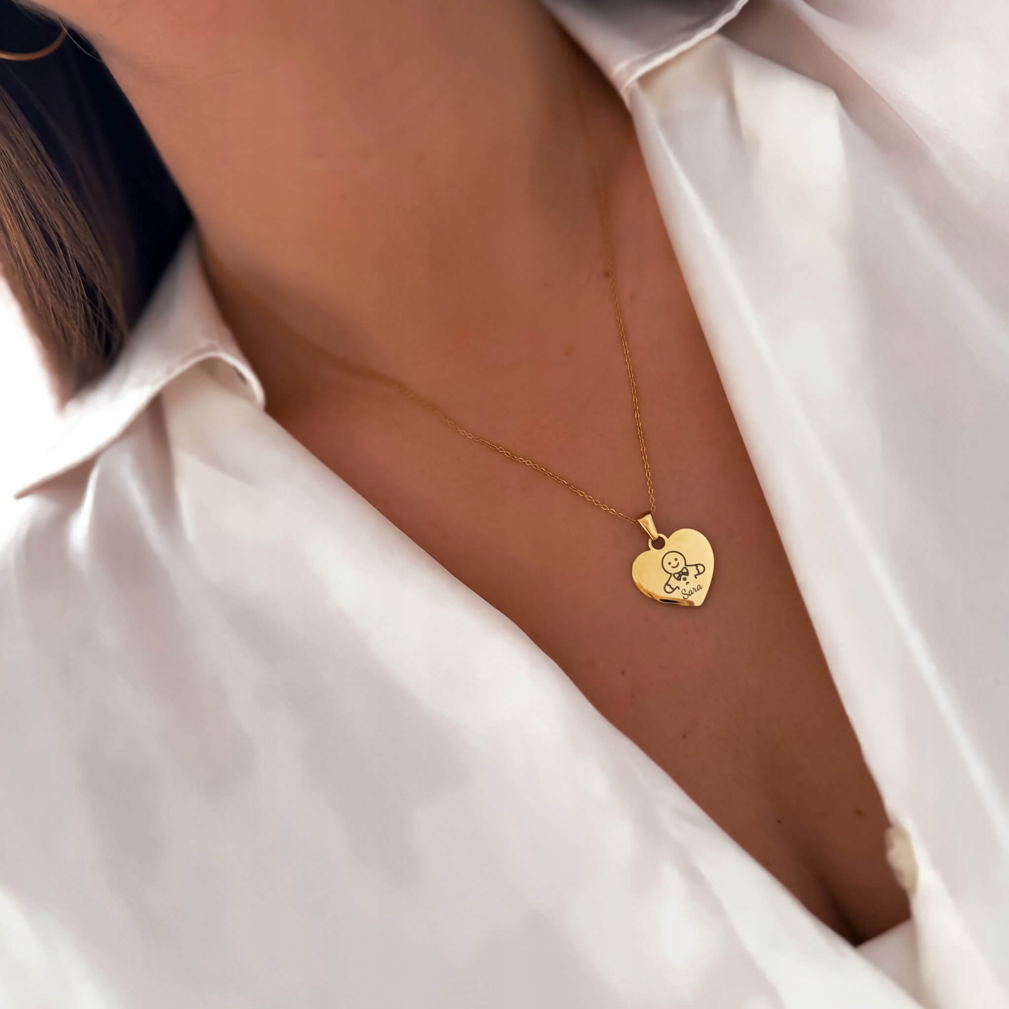 Złoty naszyjnik z grawerem serduszko pierniczek personalizacja imię prezent