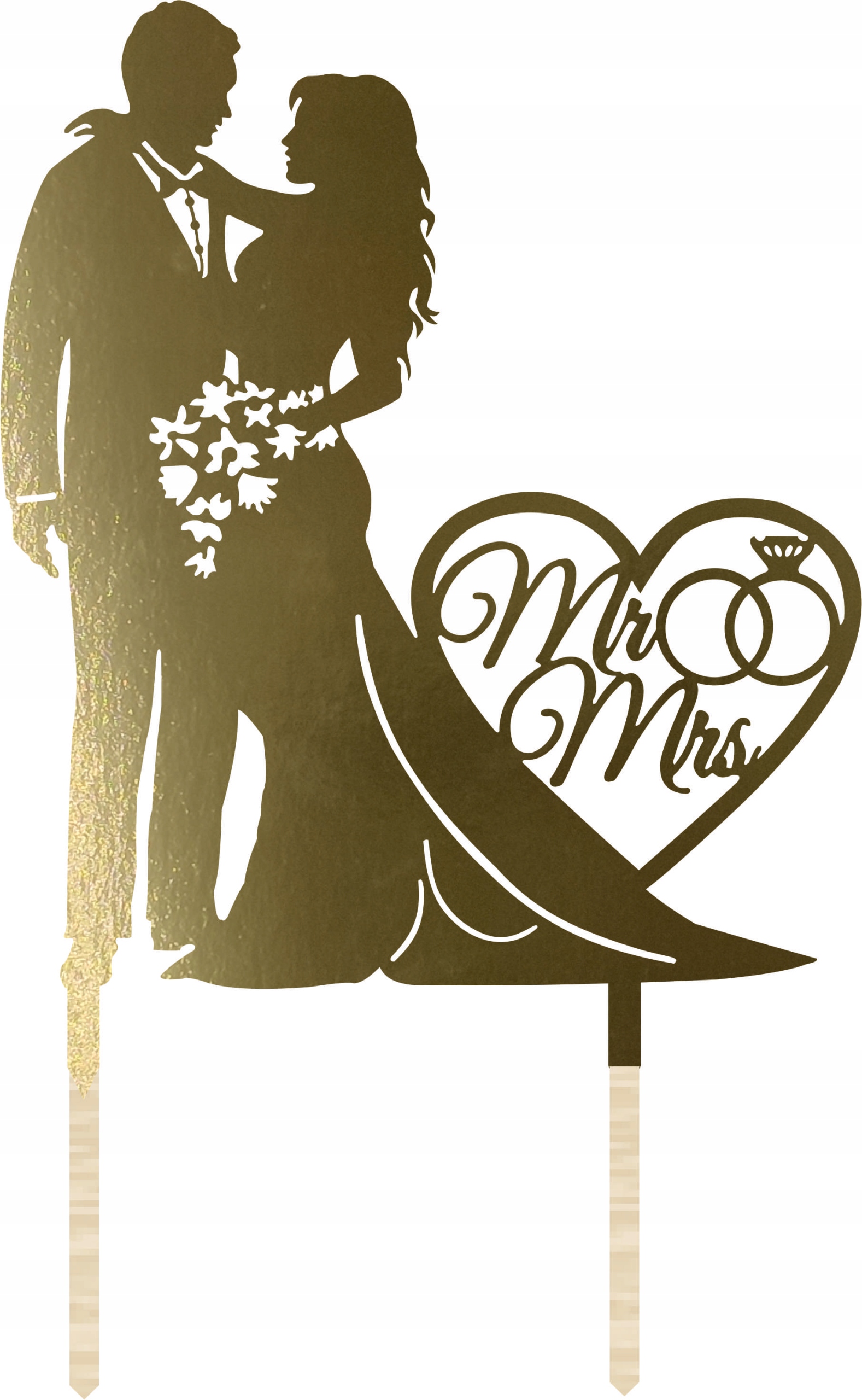 ZŁOTY TOPPER NA TORT MR MRS PARA MŁODA ŚLUB WESELE