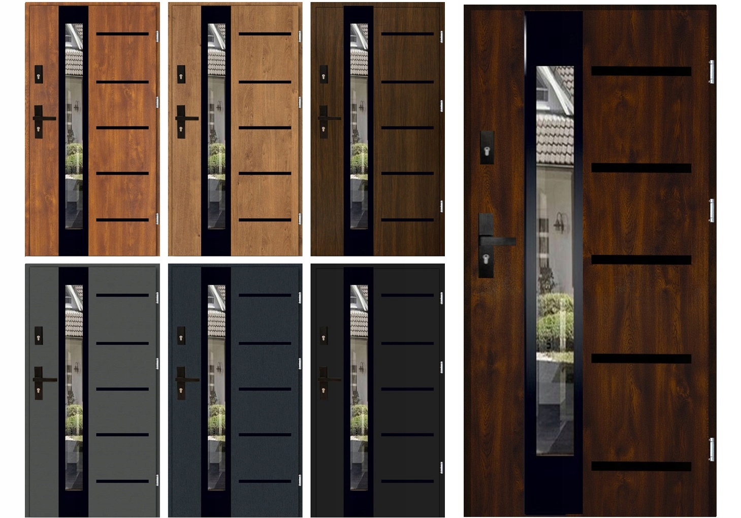 • двери из листового металла с покрытием с декоративной пленкой ПВХ в тон оконной фурнитуры,