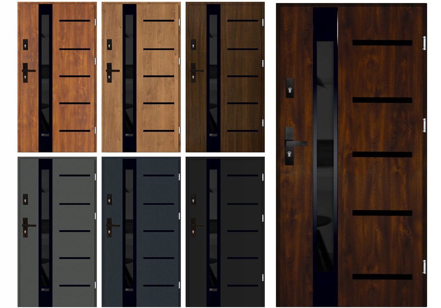 • двери из листового металла с покрытием с декоративной пленкой ПВХ в тон оконной фурнитуры,