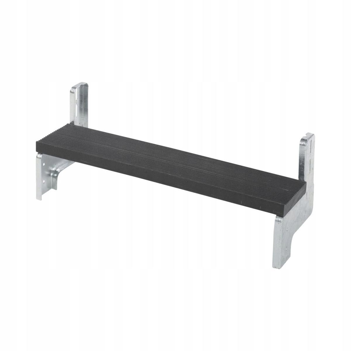 Комплект состоит из конструкции из оцинкованной стали, 1 ступени из антрацита Trimax®. Trimax® — это пластик, армированный стекловолокном. Ширина ступеней 80 см, есть и более широкие ступени – 100 см. Конструкция состоит из верхней и нижней монтажной опоры конструкции, они позволяют крепить лестницу к земле и стене. Добавляя дополнительные холмы, можно достичь максимальной высоты лестницы. 286 см.