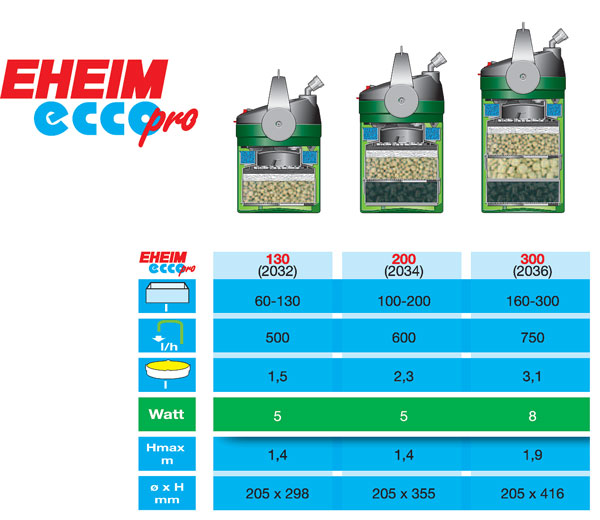 Eheim ECCO PRO – это ковшовый фильтр последнего поколения, основой данной конструкции послужила серия ECCO COMFORT.