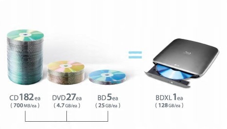 Три носителя BDXL-R/BDXL уровня RE предлагают емкость 100 ГБ, а четырехслойный BDXL-R — 128 ГБ. Теперь вы можете записывать до 128 ГБ данных на одном четырехслойном диске BDXL, что эквивалентно 27 стандартным DVD или 5 отдельным слоям Blu-ray.