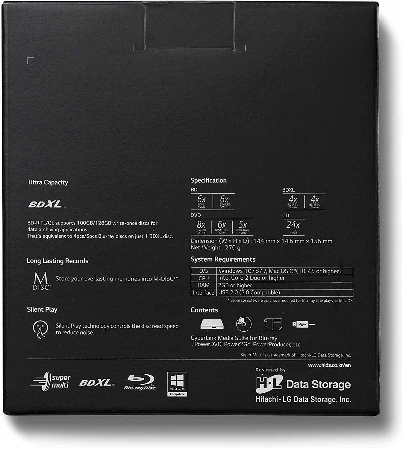 - Поддерживает диски Blu-ray BD-XL 2-го поколения.