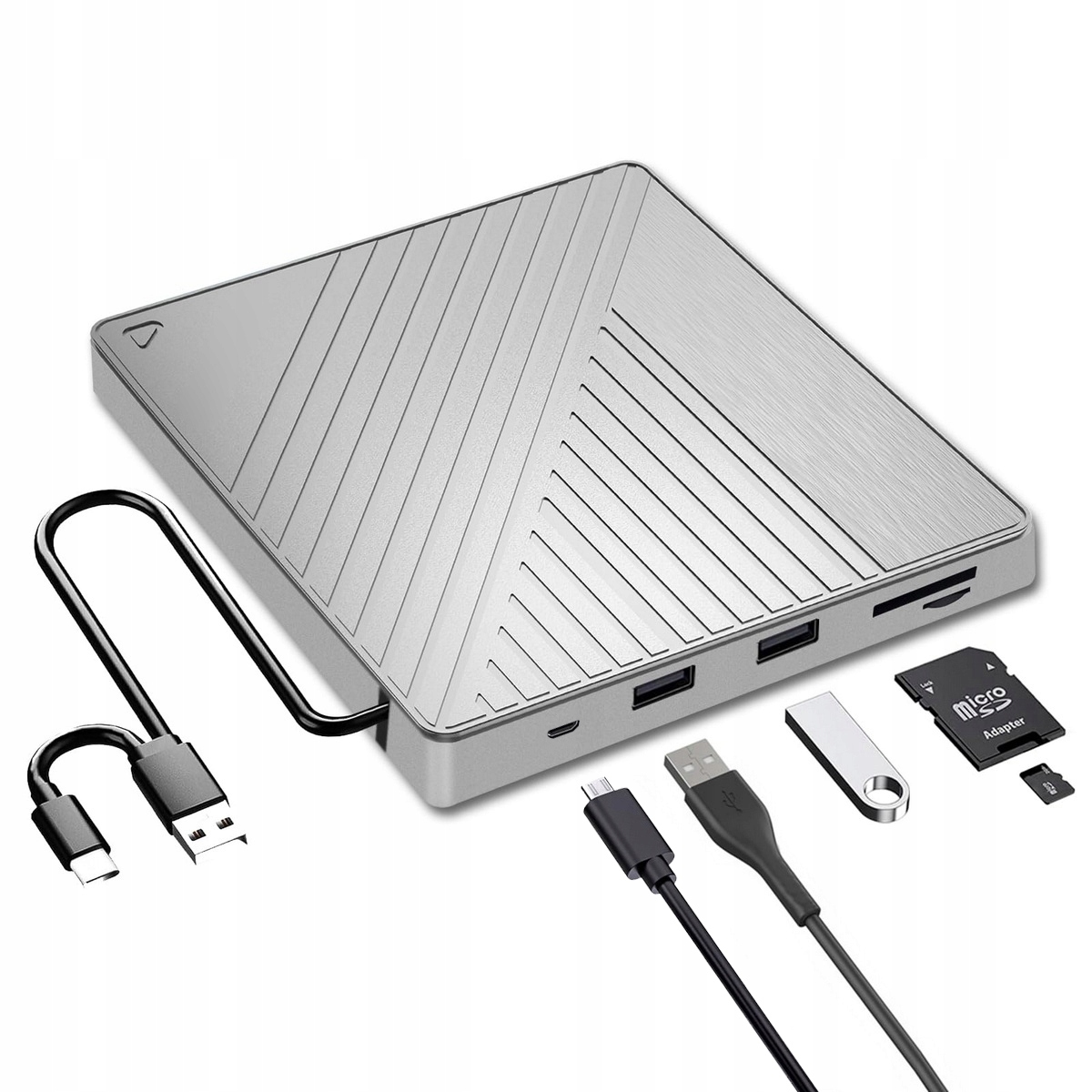 DVD External CD DVD USB 3.0 Type-C, внешний с помощью портативного рекордера RW Card Card SD/TF, быстрая передача данных на ноутбук, настольный компьютер, MacBook, Win11/10/8/7/XP, Linux, Vista (Silver)