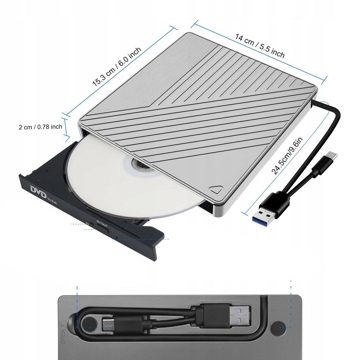 The external CD USB drive is compatible with Windows XP / 7/8/10, Vista, Mac OS 8.6 or newer and is a perfect complement to the Apple / Dell / Dell / Sony / Sony / Sony / Sony / Samsung / ASUS / Acer / HP, ultrabook, PCs, PC computers, brand without internal drive (incompatible with Windows98). Внешний привод CD/DVD - сотрудничество с высокоскоростным интерфейсом USB 3.0 обеспечивает более высокую скорость передачи данных (до 5 ГБ/с). ПРИМЕЧАНИЕ. ТВ, планшеты и диски Blu-ray, 3D, 4K, 2K с DVD, автомобиль, смартфон, проектор, PS 5, Xbox, Switch и Chrome Operating Operative Operation не поддерживаются.