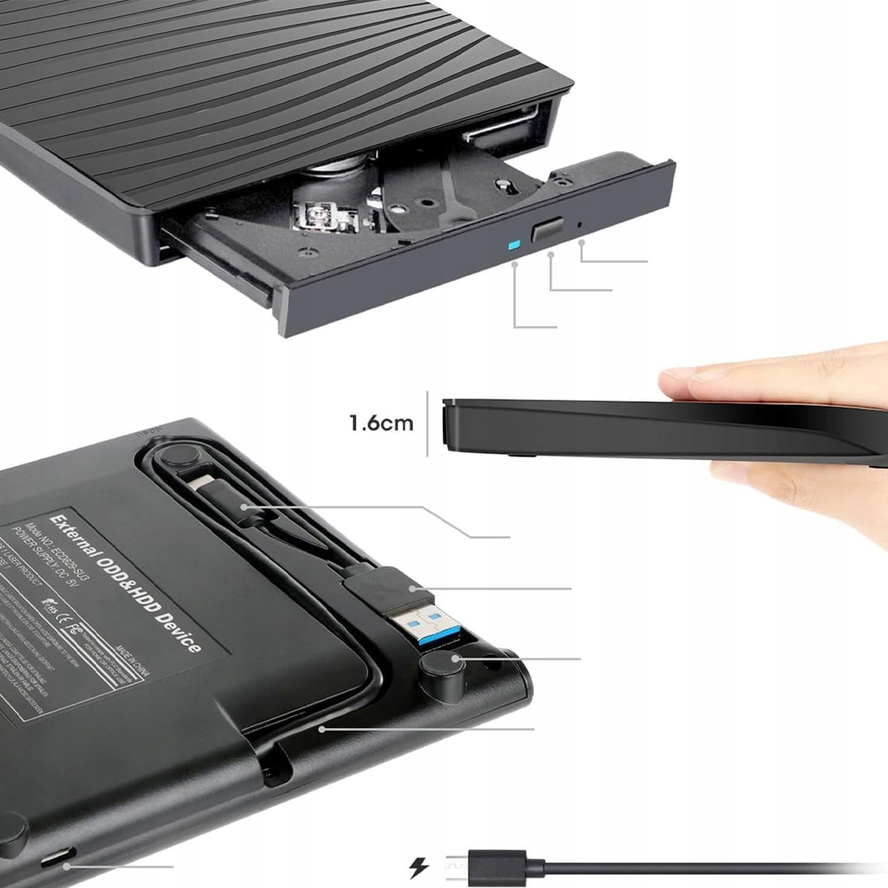 Внешний диск CD поддерживает каждый ноутбук или настольный компьютер с USB -портом или C. Поддерживает DVD-ROM, DVD-Video, CD-R/RW, CD-ROM/XA, CD-ROM, CD-EXTRA, CD-текст. Кроме того, он также поддерживает DVD-R, DVD+R, DVD-RW, DVD+RW, DVD+R DL, DVD-R DL и DVD-RAM. Самая высокая скорость чтения DVD составляет 8 раз, максимальная скорость считывания CD в 24 раза, а максимальная скорость записи CD в 24 раза. Сильная коррекция ошибок, шоковой и шумоподавления технологии.