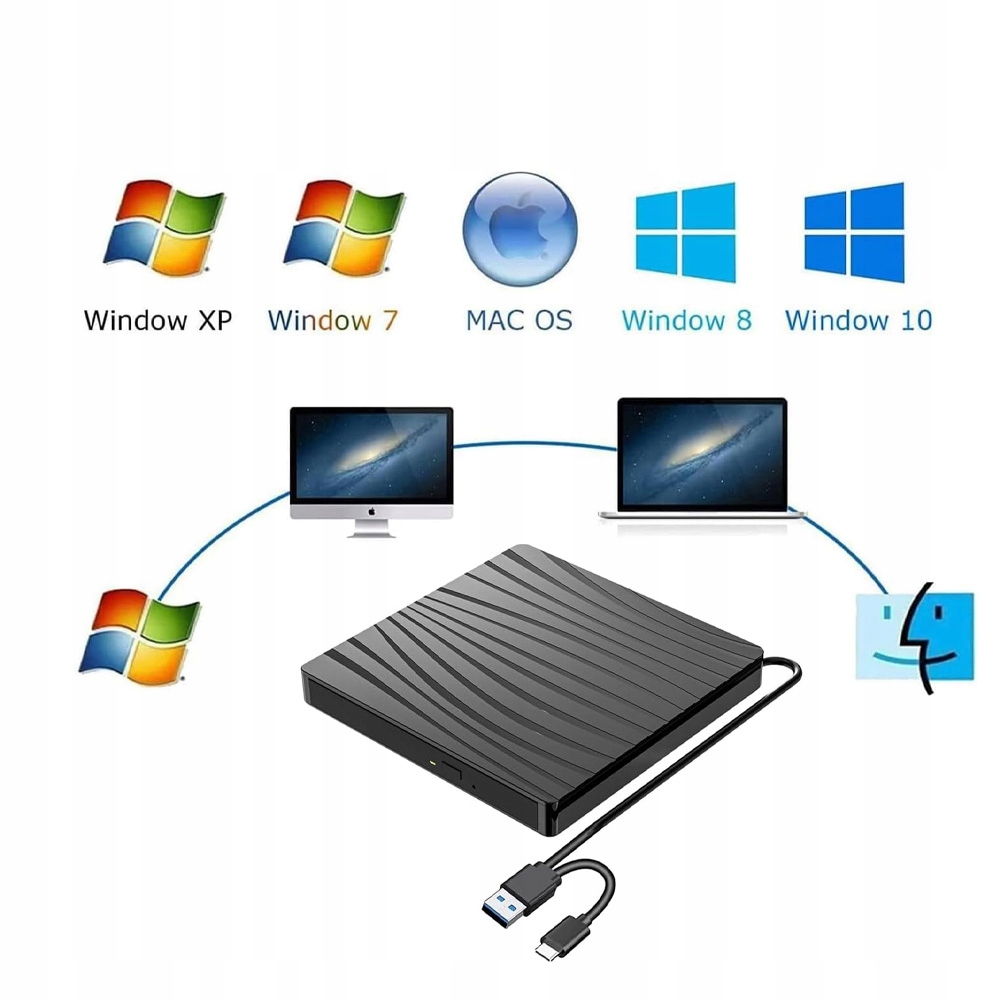 Внешний диск CD добавляется адаптером Type-C, который может поддерживать различные устройства. Совместим с Windows 11/10/8.1/8/7/XP/2003/Linux/Vista и все версии OS MAC 10, Apple MacBook Air и MacBook Pro, ноутбуки, ноутбуки, ПК, ПК, настольные компьютеры. (Этот диск CD/DVD не поддерживает диски Blu-ray. Он не совместим с телевизорами, планшетами, iPad, Chromebook, консолями Xbox, проекторами, Surface Pro, автоматическими игроками).