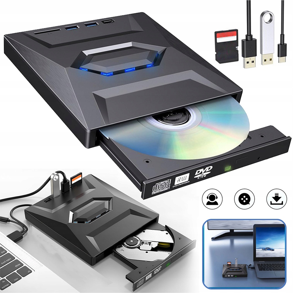 💽💽 Дисковод CD/DVD 5 в 1: Внешний привод DVD может не только читать диски CD/DVD, но также может использоваться в качестве внешнего USB-концентратора для вашего ноутбука, включая 1 порт USB 3.0, 1 порт USB 2.0, 1 разъем USB Type-C и 1 разъем Слот для карт SD/TF. Совместим с жестким диском USB, проводной/беспроводной мышью и клавиатурой, компьютером. кулер и другие компьютерные USB-аксессуары.