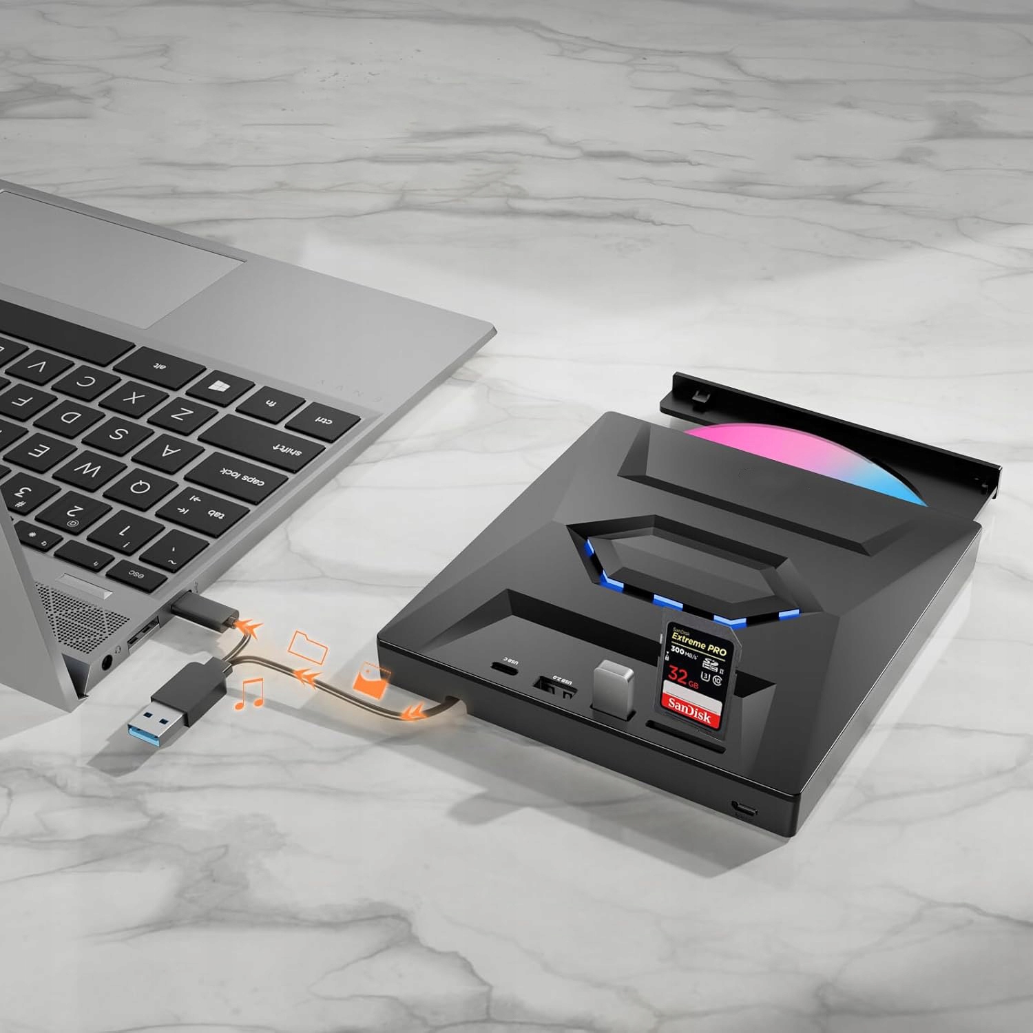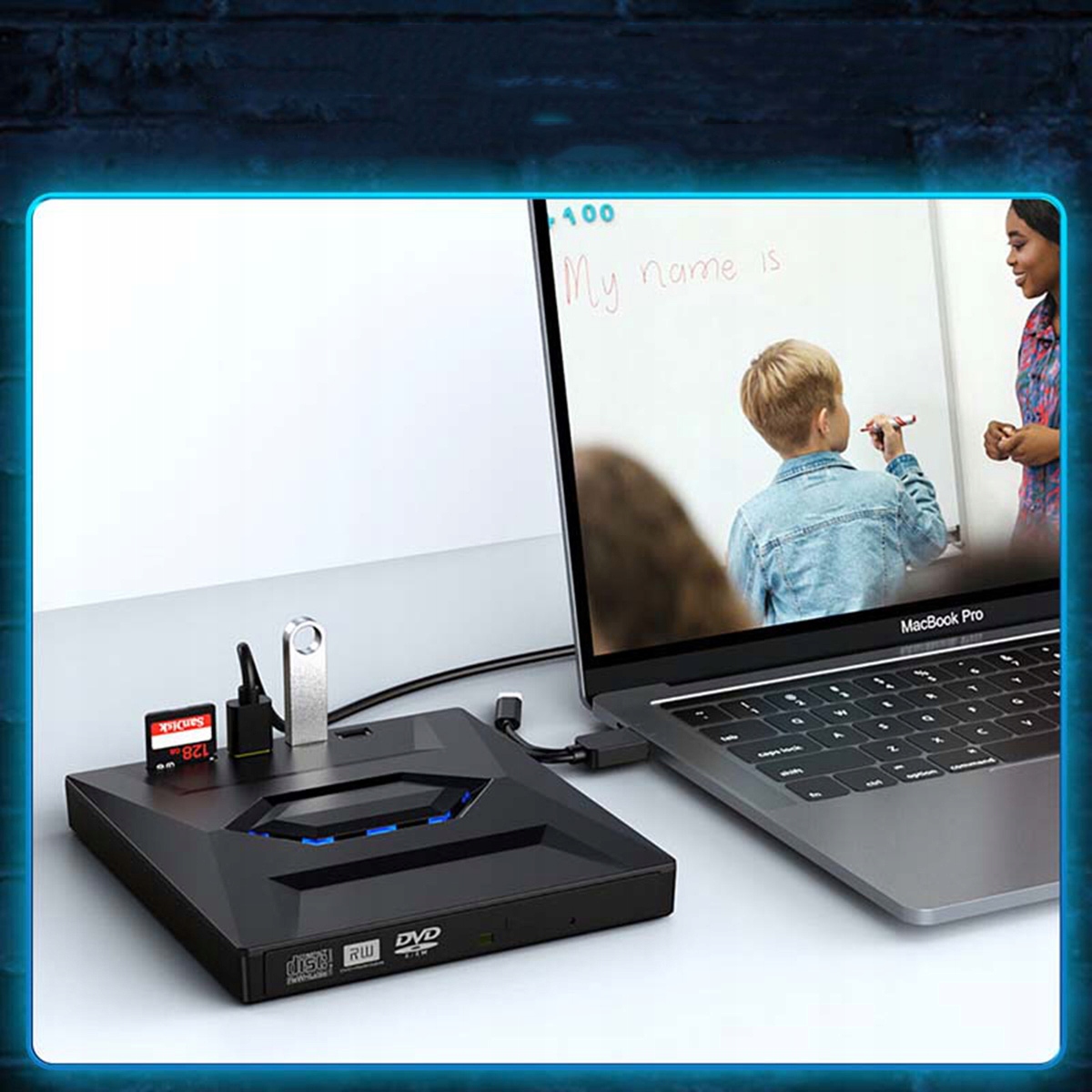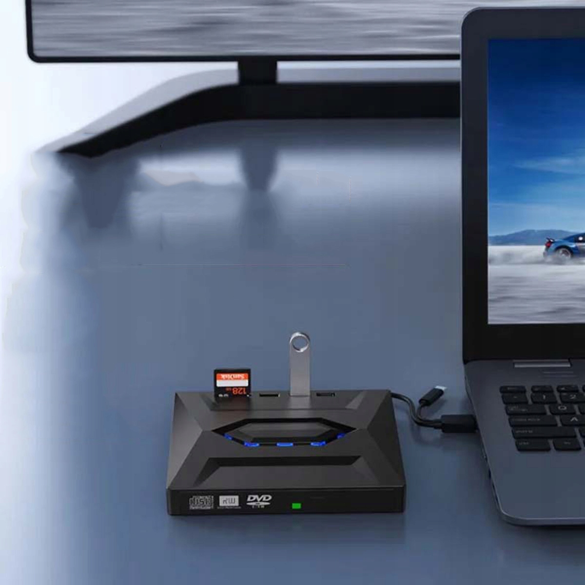 💽💽 Поддержка чтения SD-карт: это также устройство для чтения SD-карт. После вставки SD-карты данные SD-карты можно перенести очень быстро и перенести данные на компьютер без какого-либо дополнительного устройства. Кроме того, этот привод компакт-дисков оснащен несколькими портами USB, поэтому порт USB может не только считывать данные с жесткого диска, но и заряжать телефон. PS: Слоты SD и TF нельзя использовать одновременно, если вы используете внешний привод компакт-дисков для своего ноутбука.